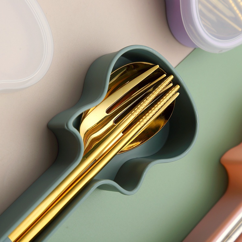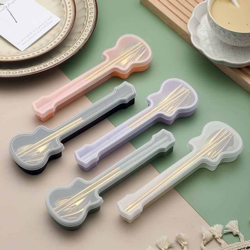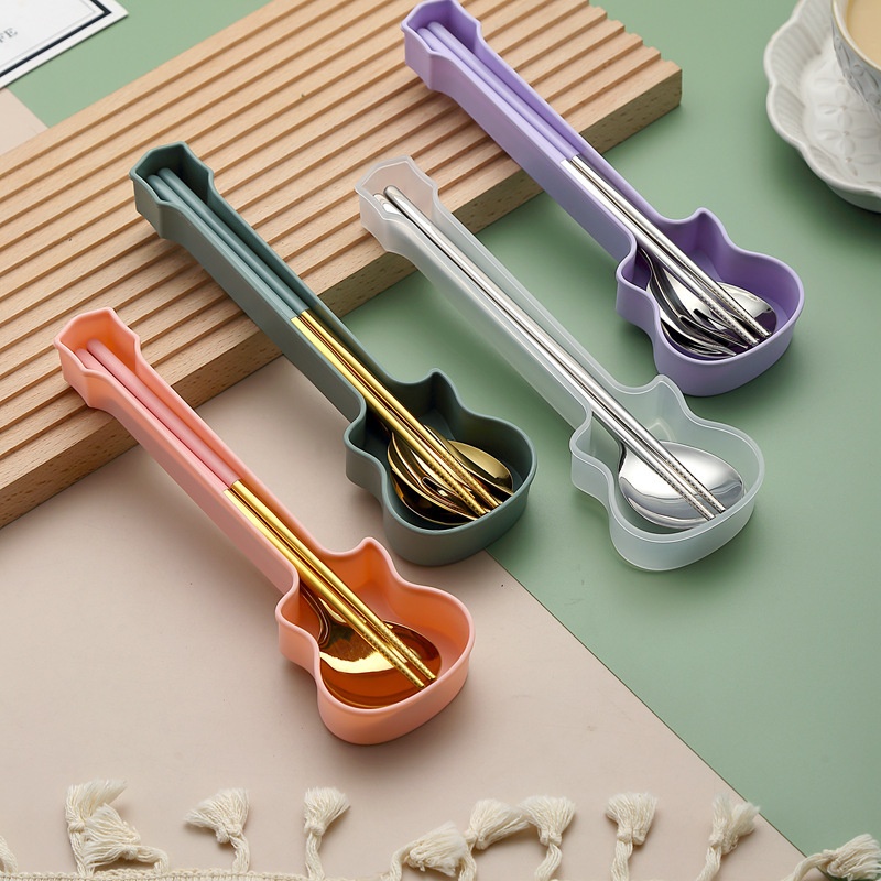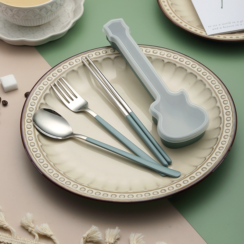 Guitar Korean Style Portable Tableware304 Stainless Steel Internet Celebrity Spoon, Fork And Chopsticks Three-piece Set Spoon Gift Set