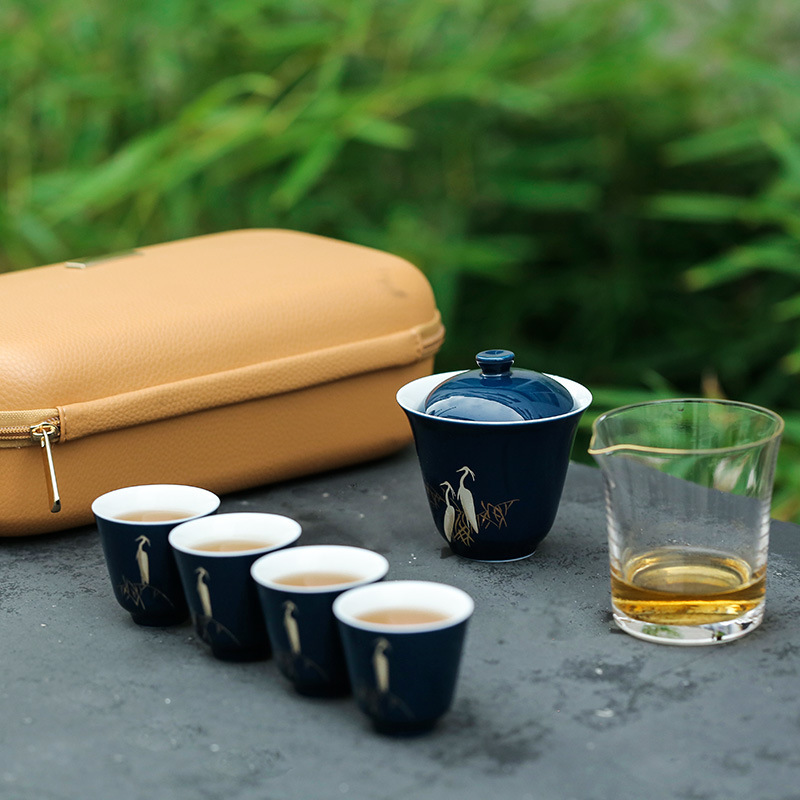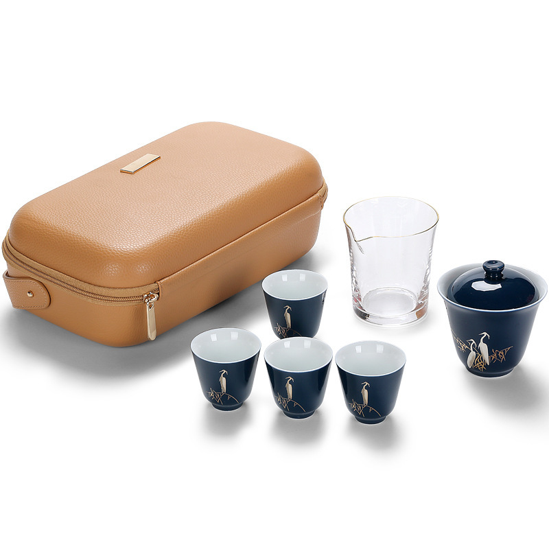 Outdoor Travel One Pot Four Cups Ceramic Quick Cup Portable Kung Fu Tea Set Tea Cup Set Company Souvenir