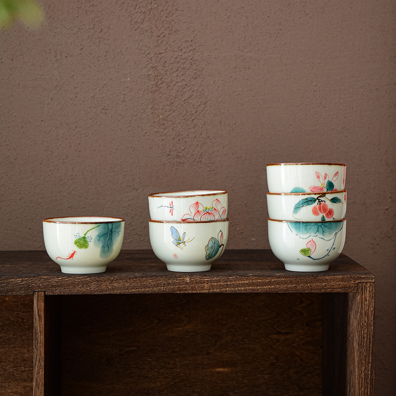 Hand-painted Tea Cup Master Cup Ceramic Cup Lotus Tea Cup Chinese Kung Fu Tea Set Blue And White Porcelain Single Cup6-cup Gift Box