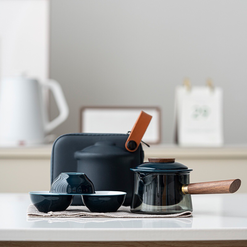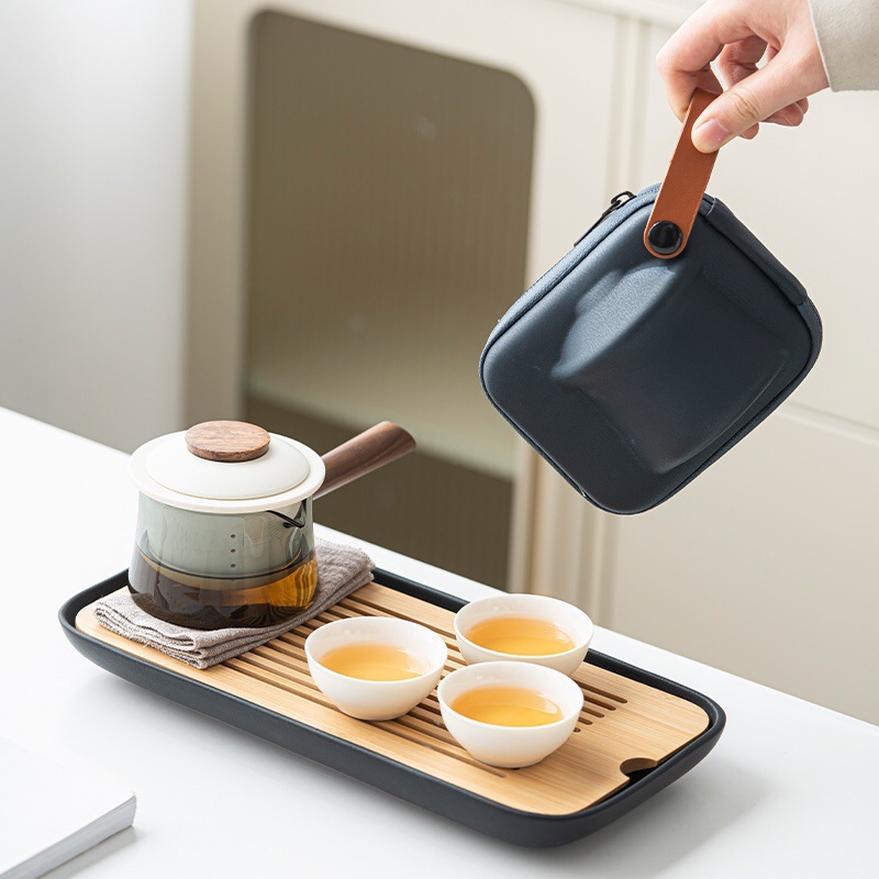 Portable Travel Kung Fu Tea Set Qike One Pot Three Cups Outdoor Camping Home Side Handle Tea Maker Teapot