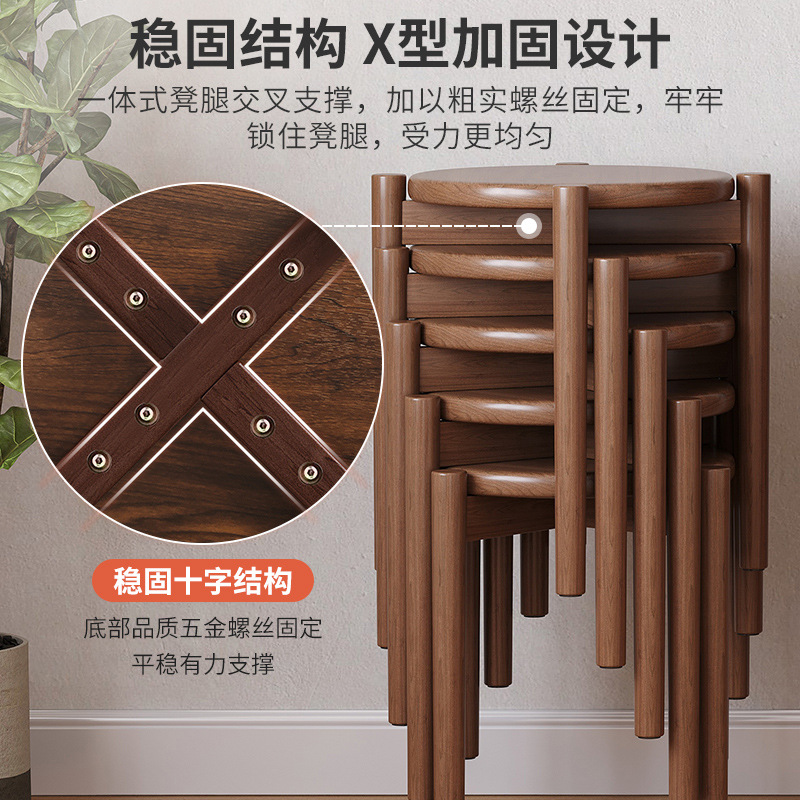 Solid Wood Stool,Household Stackable Round Stool,Living Room,Chinese Dining Table Stool,Dining Chair,Square Stool,Simple Modern Bench,High Stool