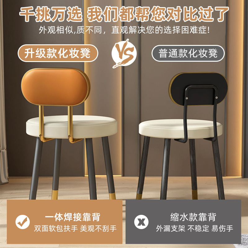 Makeup Chair Dressing Table Stool Girls'Bedroom Light Luxury High-end Manicure Chair Low Stool Dining Table Chair