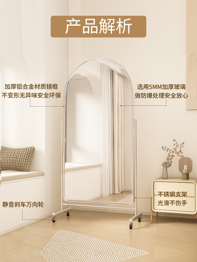 Full-length Mirror,Movable Clothing Store Fitting Mirror,Tall And Thin,Home Dressing Mirror,Room Special Floor Mirror