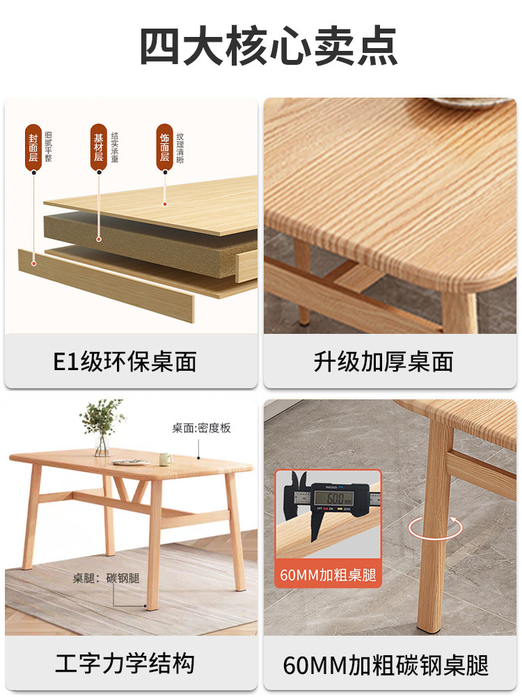 Nordic Dining Table For Home Small Apartment Modern Simple Rental House Rectangular Dining Table Commercial Dining Table And Chair Combination