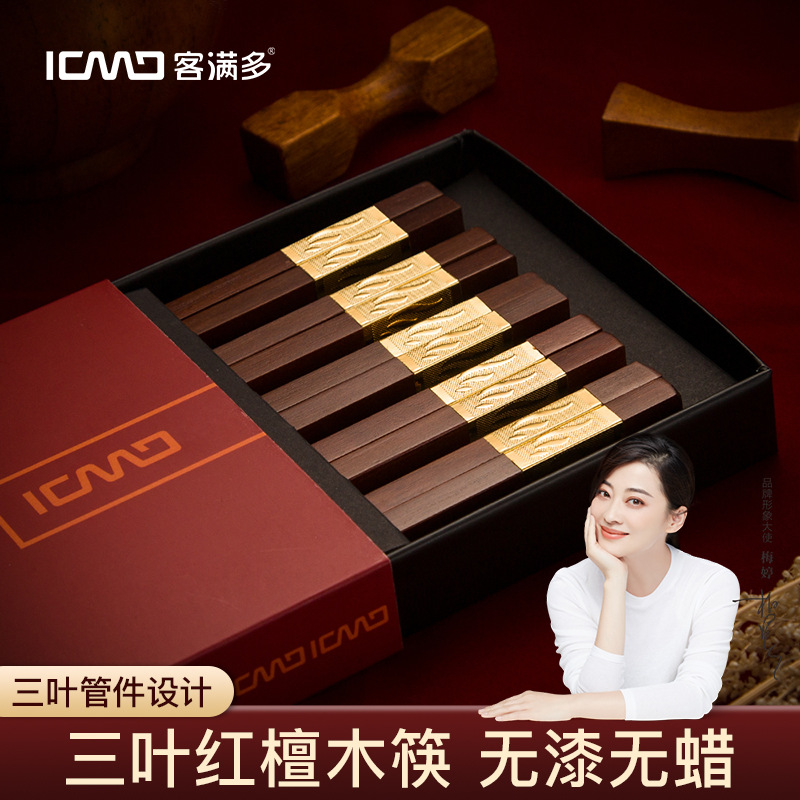 Customers Are Full Of Three-leaf Red Sandalwood Chopsticks Gift Household Supermarket Chopsticks10 Pairs Of Gift Boxes On Behalf Of S