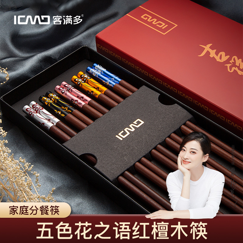 Customers Are Full Of Red Sandalwood Chopsticks,Supermarket Household Chopsticks And Tableware,One-piece Drop-shipping Flower Language Wooden Chopsticks10 Pairs Gift Box