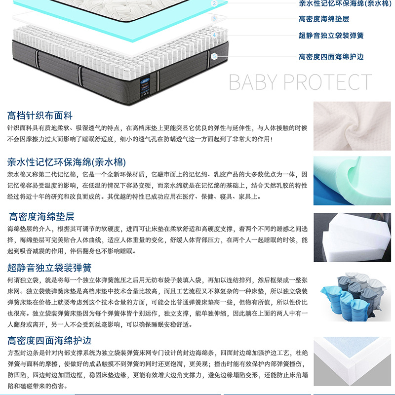 Evening Five-star Anti-mite High-end Spine Mattress Independent Spring Slow Rebound Hydrophilic Memory Foam Simmons
