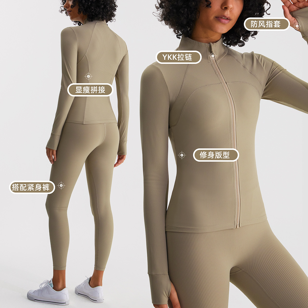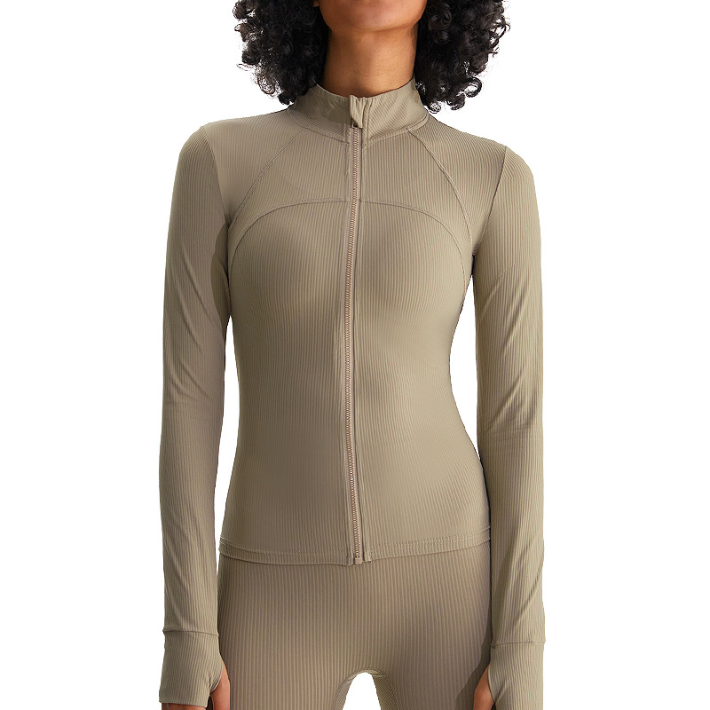 Ribbed Yoga Jacket For Women,Moisture-absorbent,Quick-drying Running Training Sweatshirt,Slim-fitting Nude High-elastic Sports Top