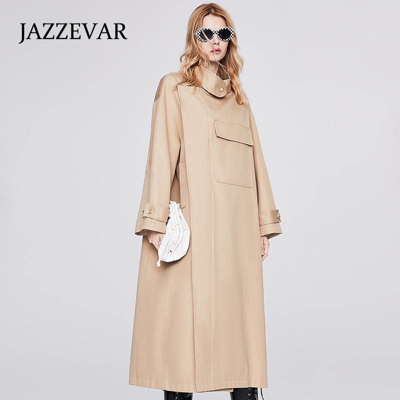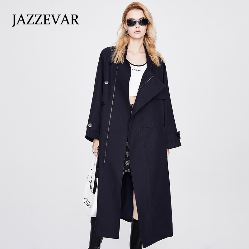 Jiazehua Long Profile Windbreaker Autumn Glossy High-density Windbreaker British Style Workwear Windbreaker For Women