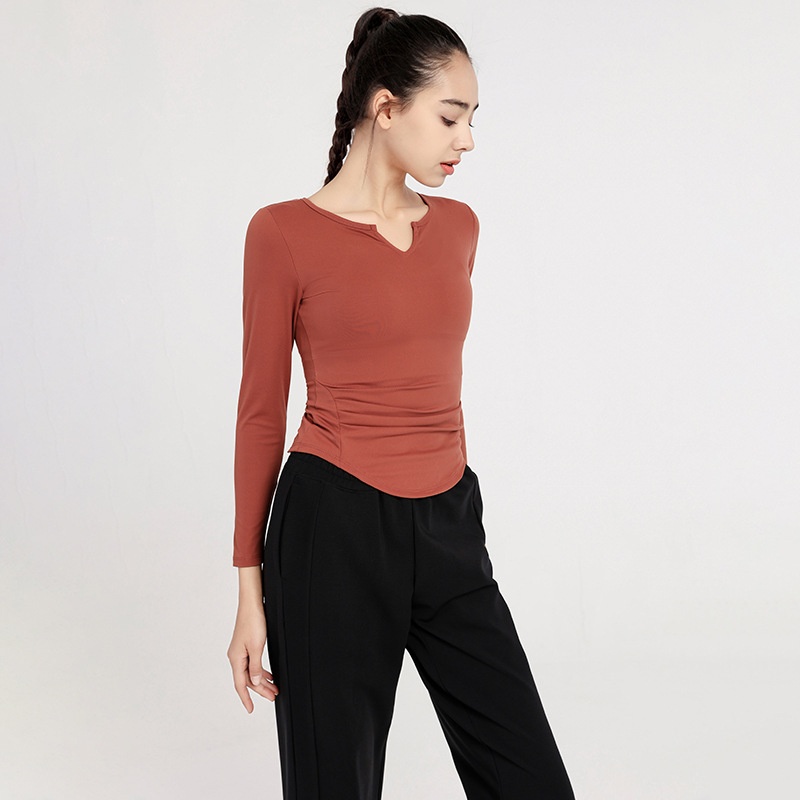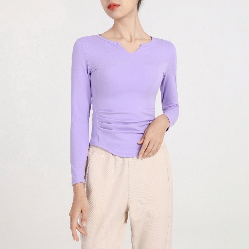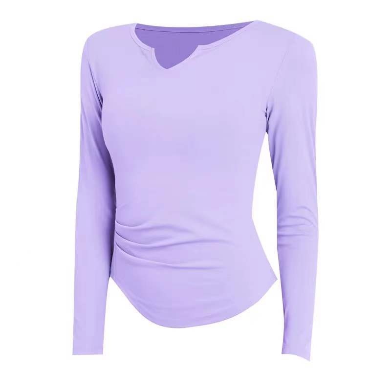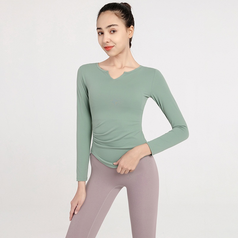 Spring And Autumn Nude-feeling Thin Yoga Clothes V-neck Slim Long-sleeved Running T-shirt Sports Outer Tops And Blouses For Women