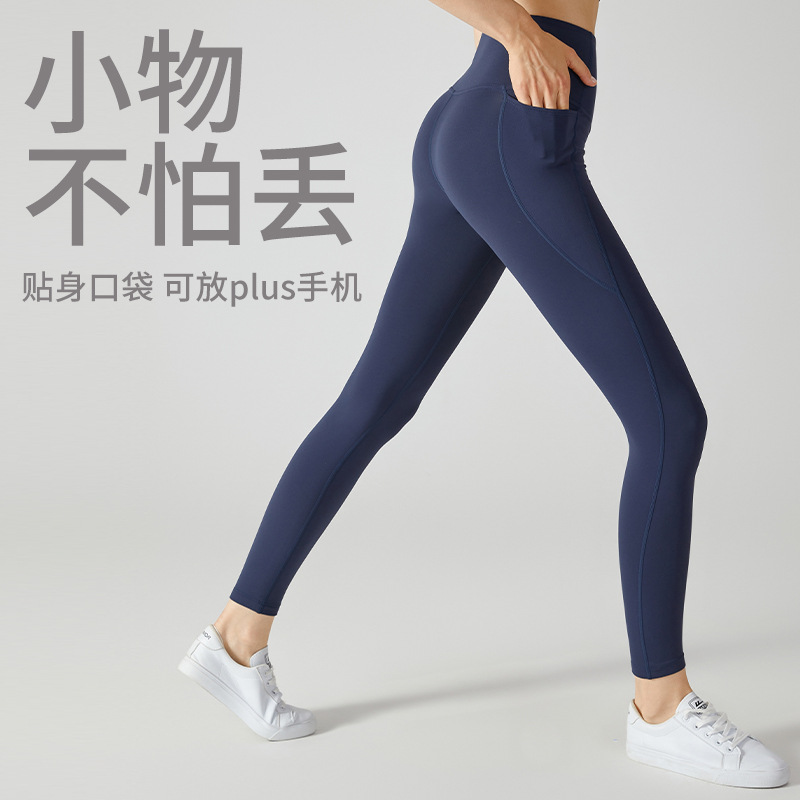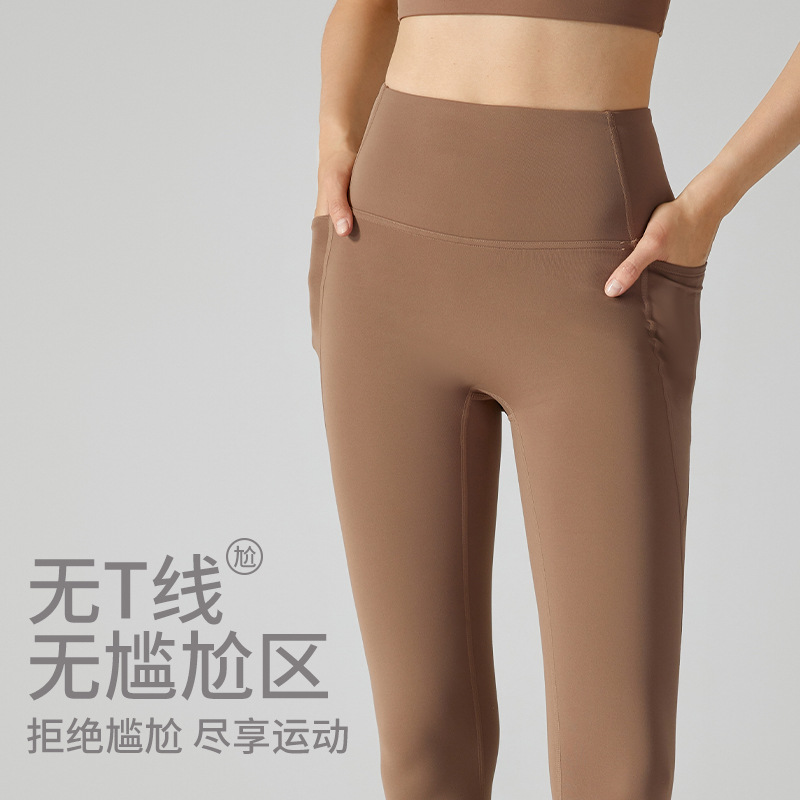 European And American Fleece Yoga Autumn And Winter Yoga Pants High-waisted Belly-keeping Warm Sports Tights For Women With Side Pockets