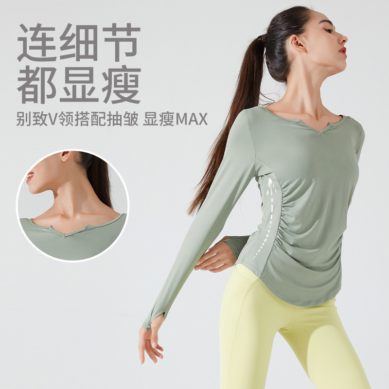 V-neck Temperament Yoga Top Women's Spring And Autumn Slim Large Size Quick-drying Long-sleeved Professional Morning Running Sports Fitness Wear T-shirt