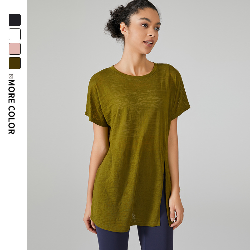 Ningbo Restart Spring And Summer Unilateral Slit Long Sleeve Yoga Blouse Women's Lightweight Sports Running Loose Fitness Wear