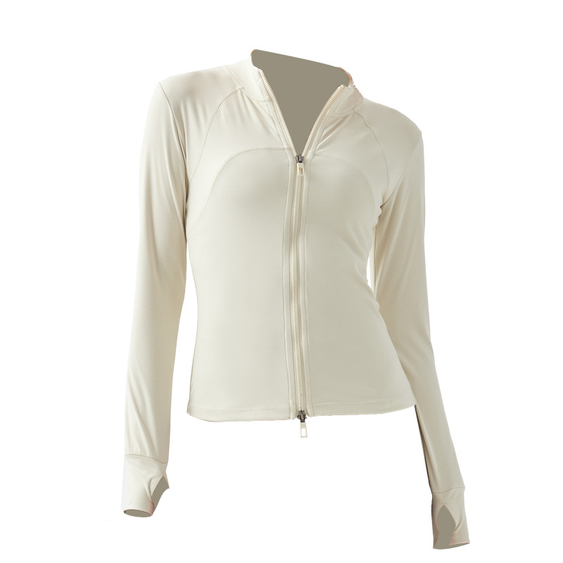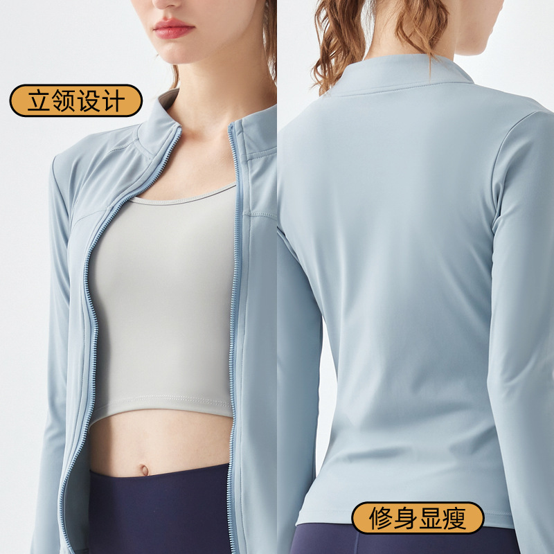 Double Zipper Pull-on Yoga Wear,Stand-up Collar Jacket,Nude And Versatile Running Fitness Wear,Long-sleeved Tight Sports Top For Women