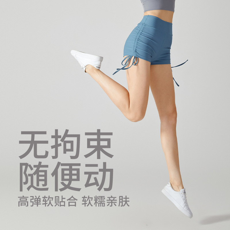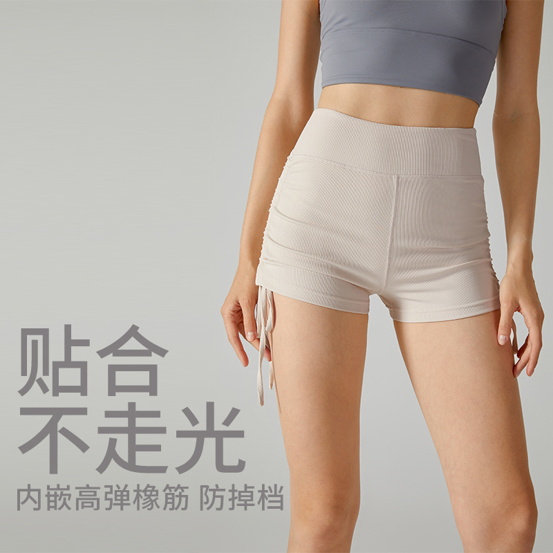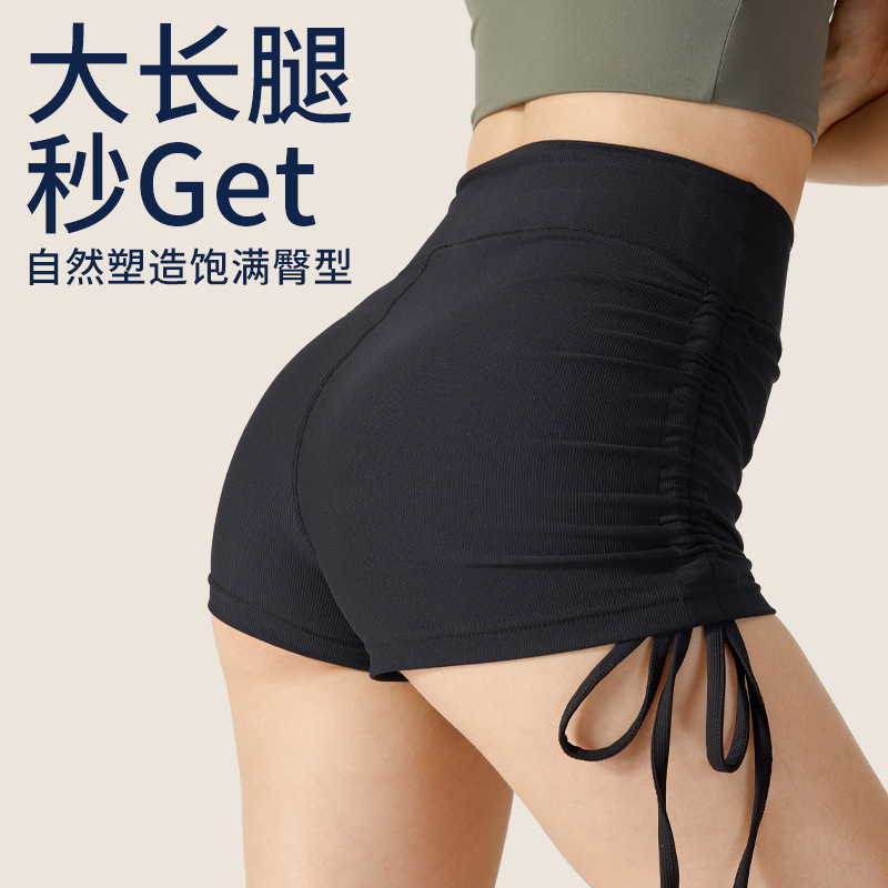 European And American Hotties Drawstring Peach Hip Shorts Fitness Hot Pants High Waist Tight Tummy Control Yoga Exercise Aerobics