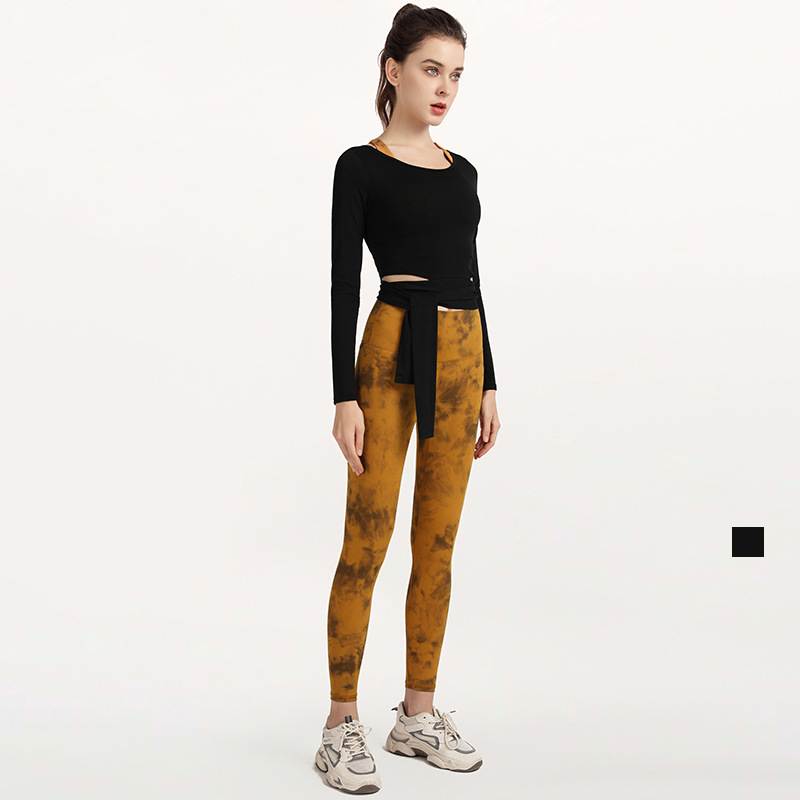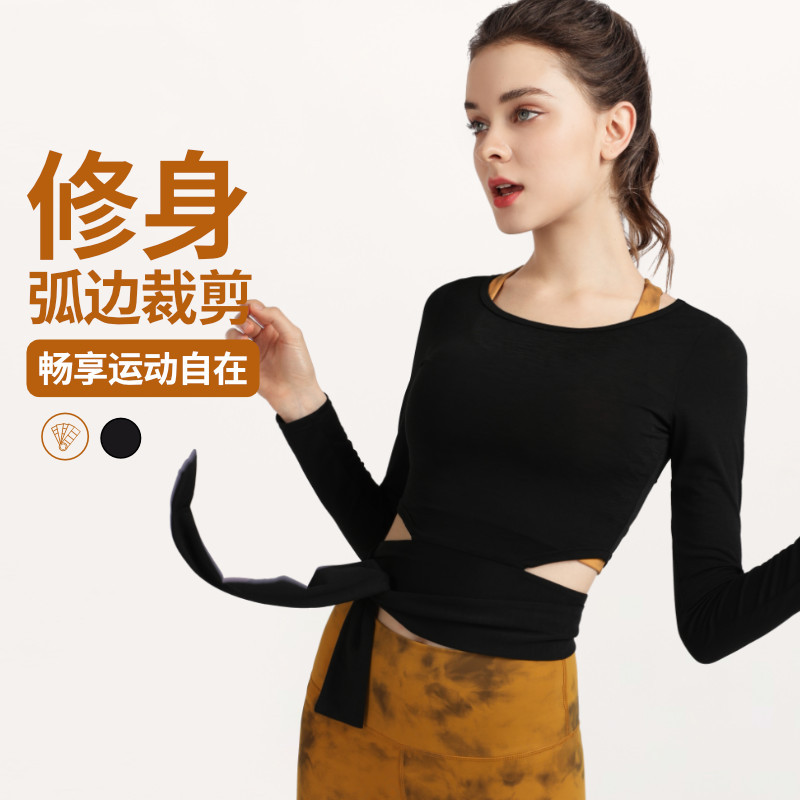 European And American Fashionable Lace-up Long-sleeved Sports Fitness Clothes Dance Yoga Clothes Women's Training Running Tops