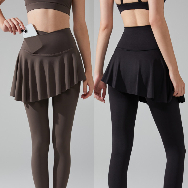 Ningbo Restarts Autumn And Winter Holidays Two-piece Culottes And One-piece Leggings Sports Yoga Pleated Skirt Anti-exposure Tennis Skirt For Women