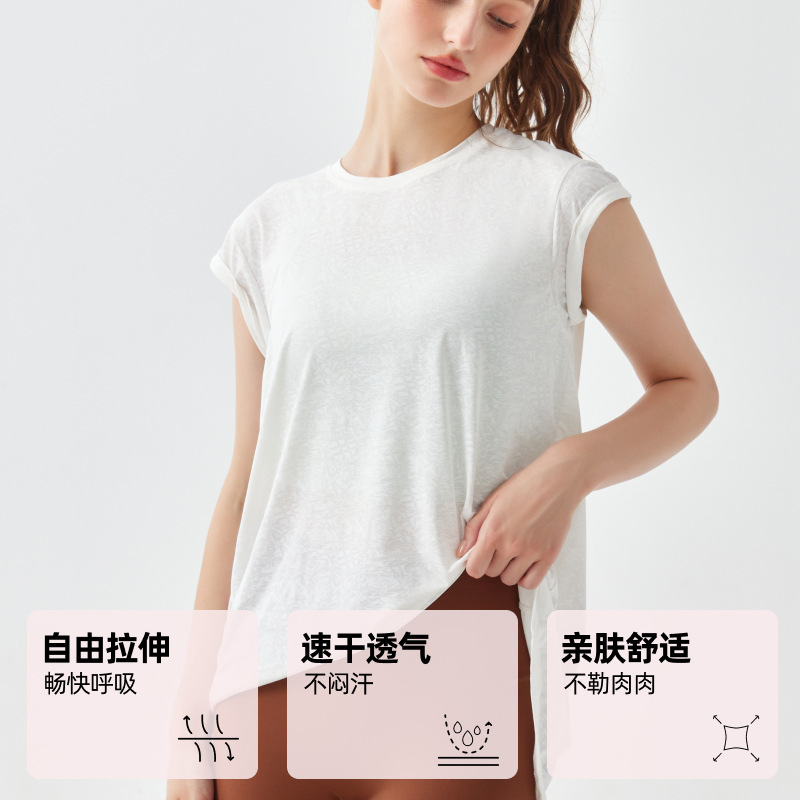 Summer Short-sleeved Quick-drying Sportswear T-shirt Yoga Wear Loose Slit Swallowtail Beautiful Back Top Running Fitness Wear For Women