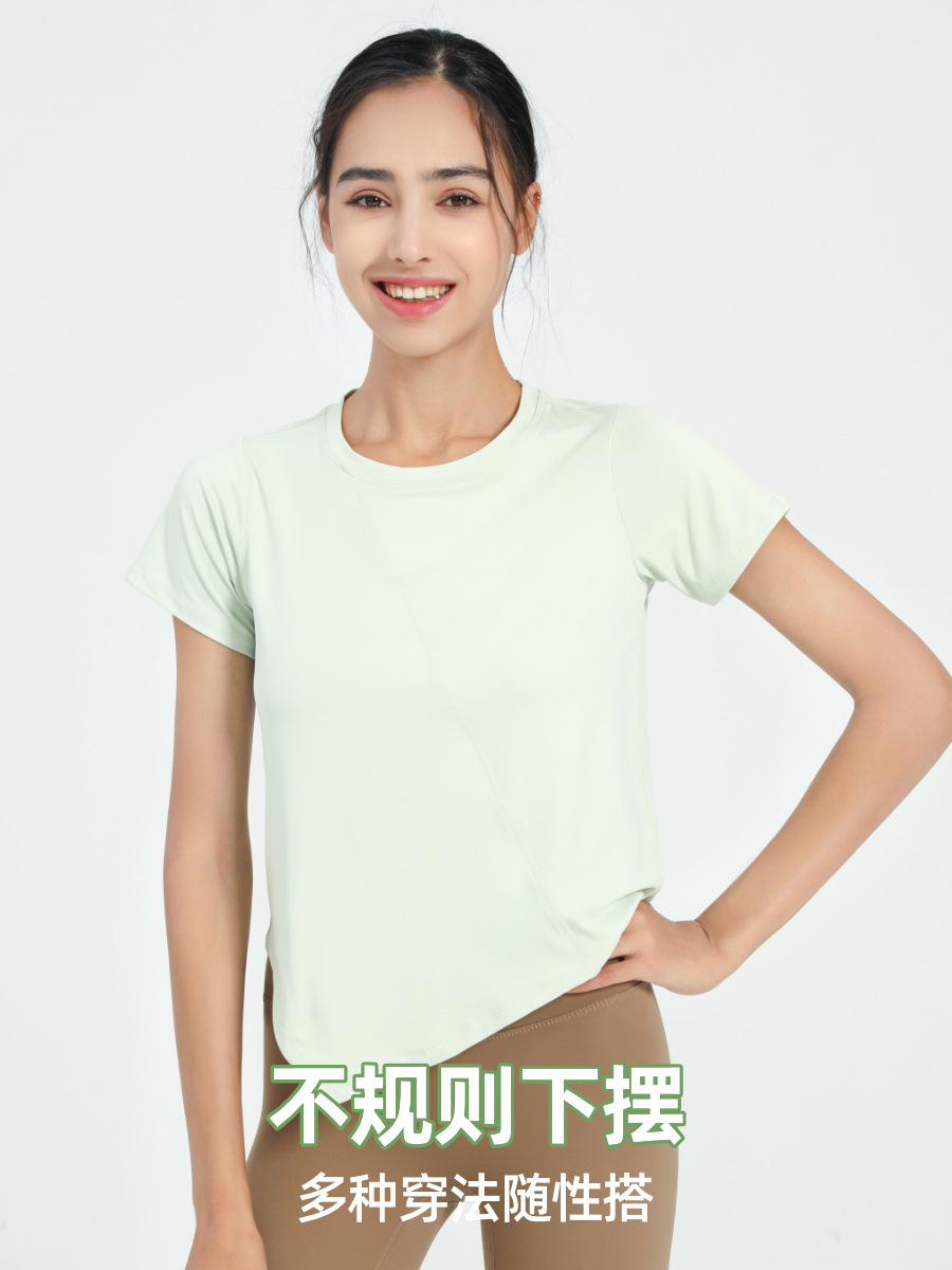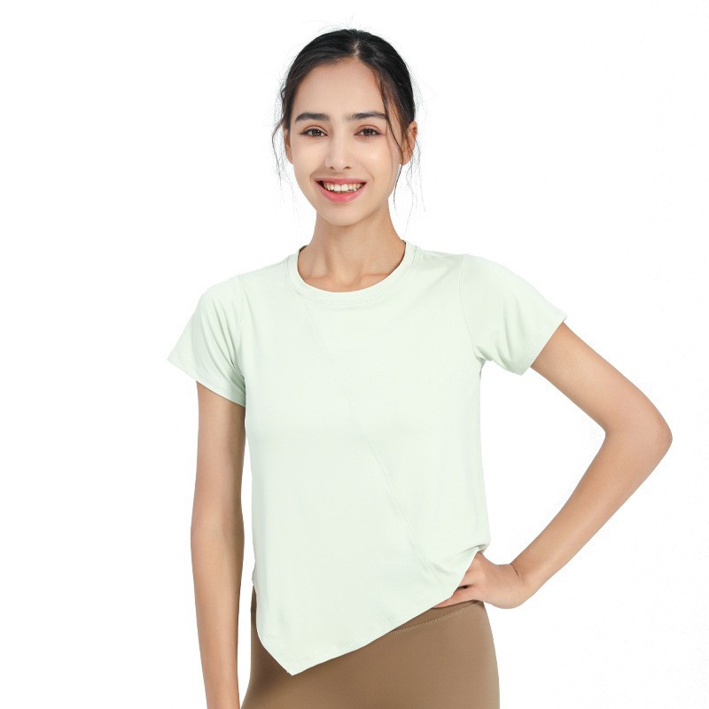 European And American Sports Tops For Women,Loose Quick-drying Yoga Short-sleeved Running Blouses,Fitness Wear T-shirts,Irregular Internet Celebrities