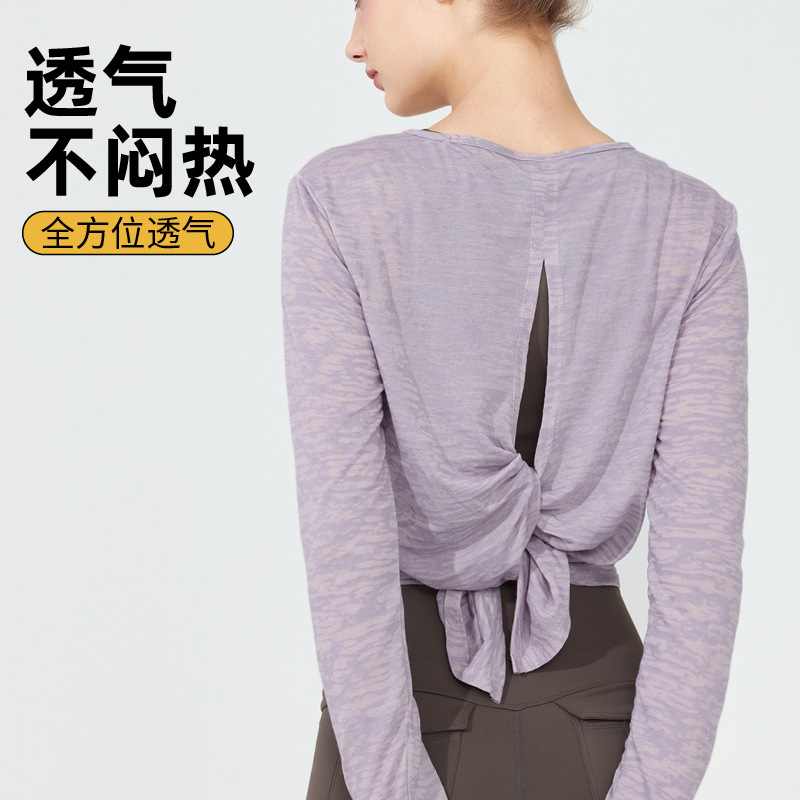 Spring And Autumn Yoga Wear Long-sleeved Vest Running Top Women's Training Sportswear Hollow Breathable Loose Fitness Wear