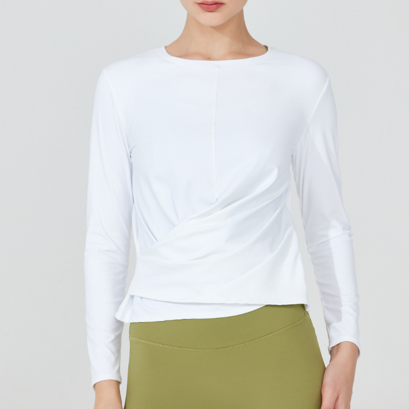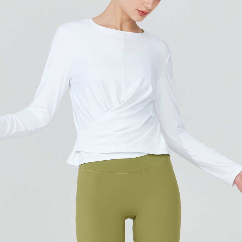 Nude Quick-drying Sports Running Long-sleeved T-shirt Cross-waist Breathable Yoga Wear Sexy Fashion Loose Fitness Wear For Women