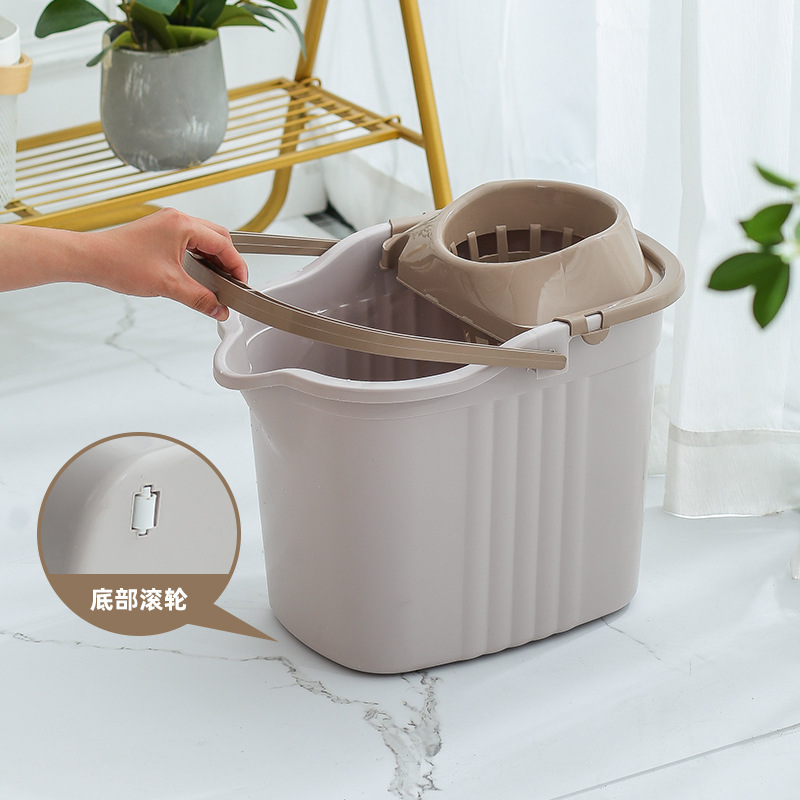 Household Mopping Bucket Plastic Old-fashioned Wheeled Water Mop Single Bucket Manual Squeeze Bucket Floor Mopping Bucket