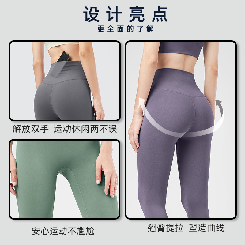 Lulu Nude Brushed Yoga Fitness Trousers High Waist Seamless Hip Lift Slim Moisture Wicking Casual Sports Pants For Women