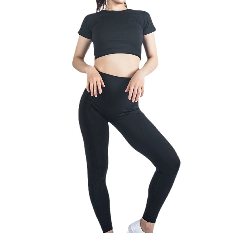 Women's Yoga Clothes Seamless Suit European And American Outdoor Running Yoga Tops High Waist Peach Butt Tight Yoga Pants