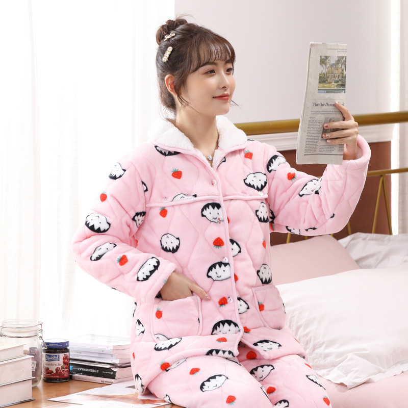 Three-layer Quilted Maternity Pajamas For Women In Autumn And Winter,Large Size Thickened And Velvet Confinement Clothes,Postpartum Breastfeeding,Maternal Pregnancy Period