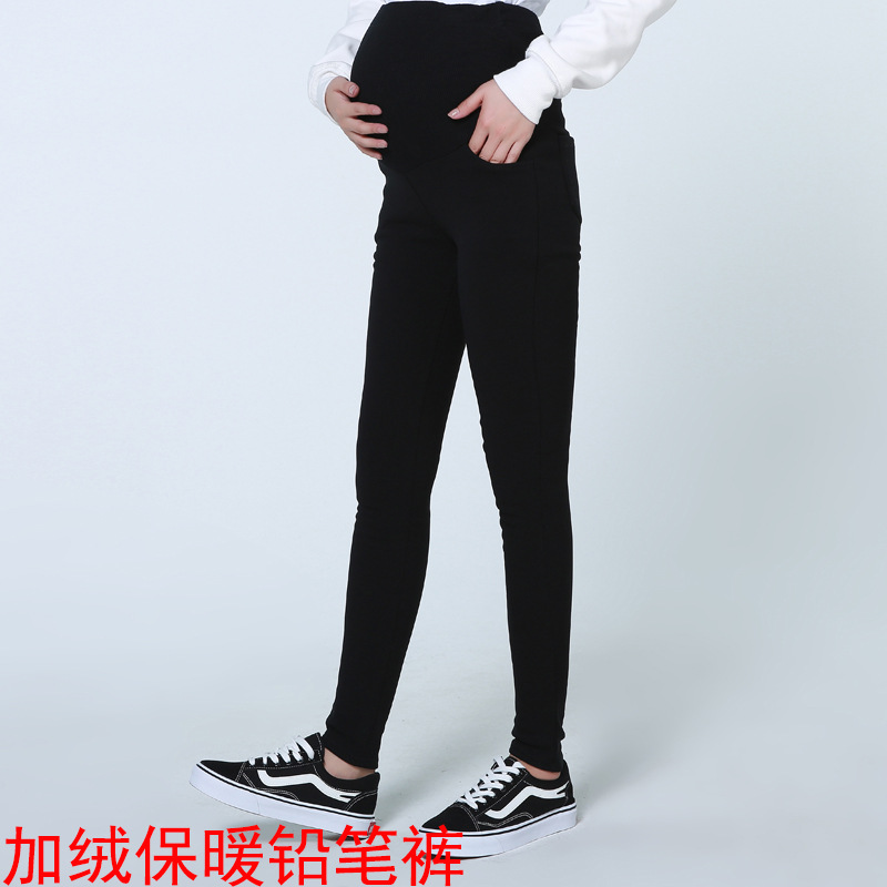Large Size Velvet Maternity Pants Autumn And Winter Maternity Belly Support Elastic Winter Clothing Thick Velvet Outer Trousers