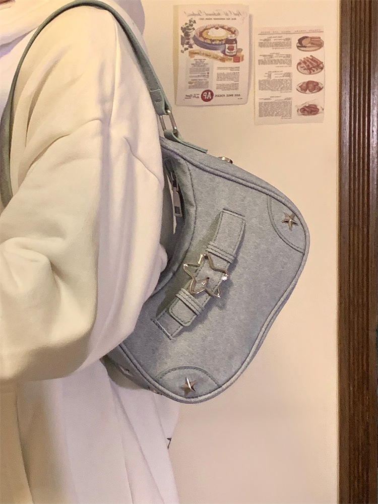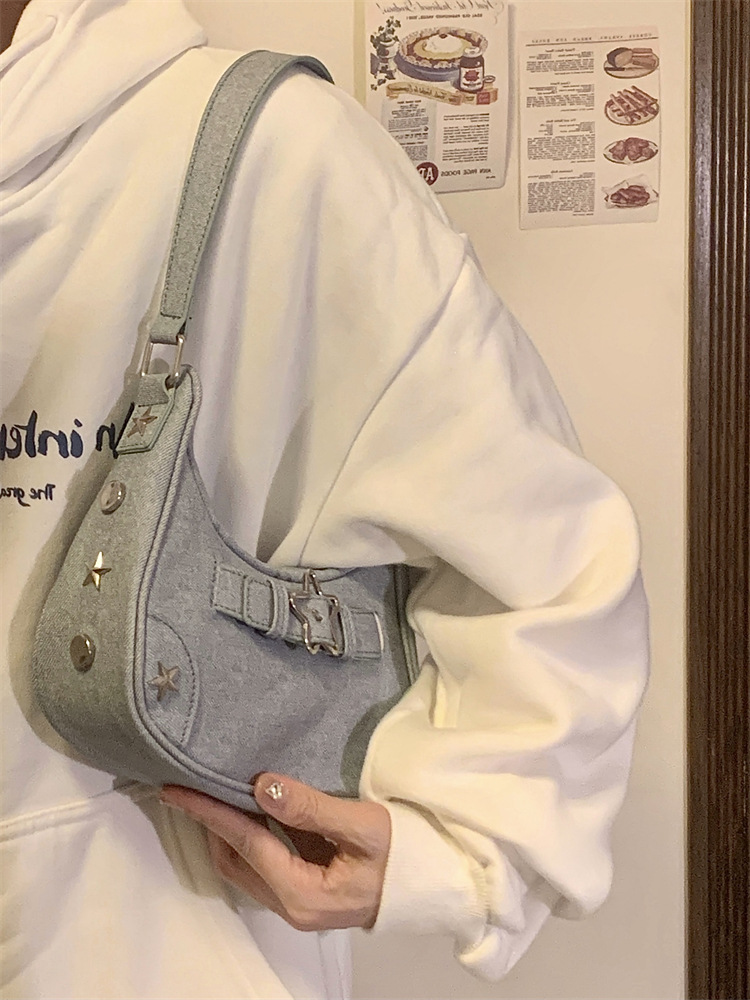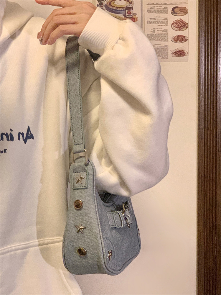 Cute And Versatile Girl Bag Fashion Star Hot Girl Armpit Bag Niche Denim Canvas Shoulder Bag