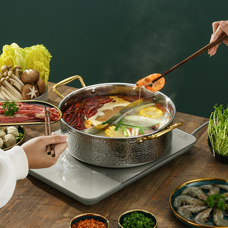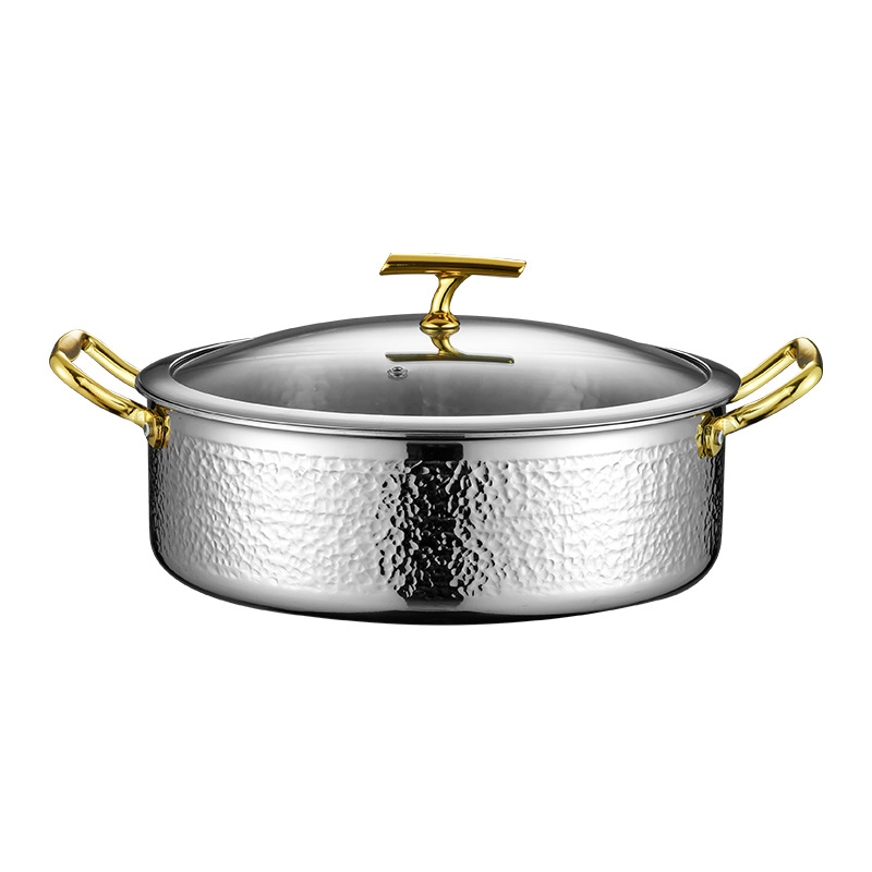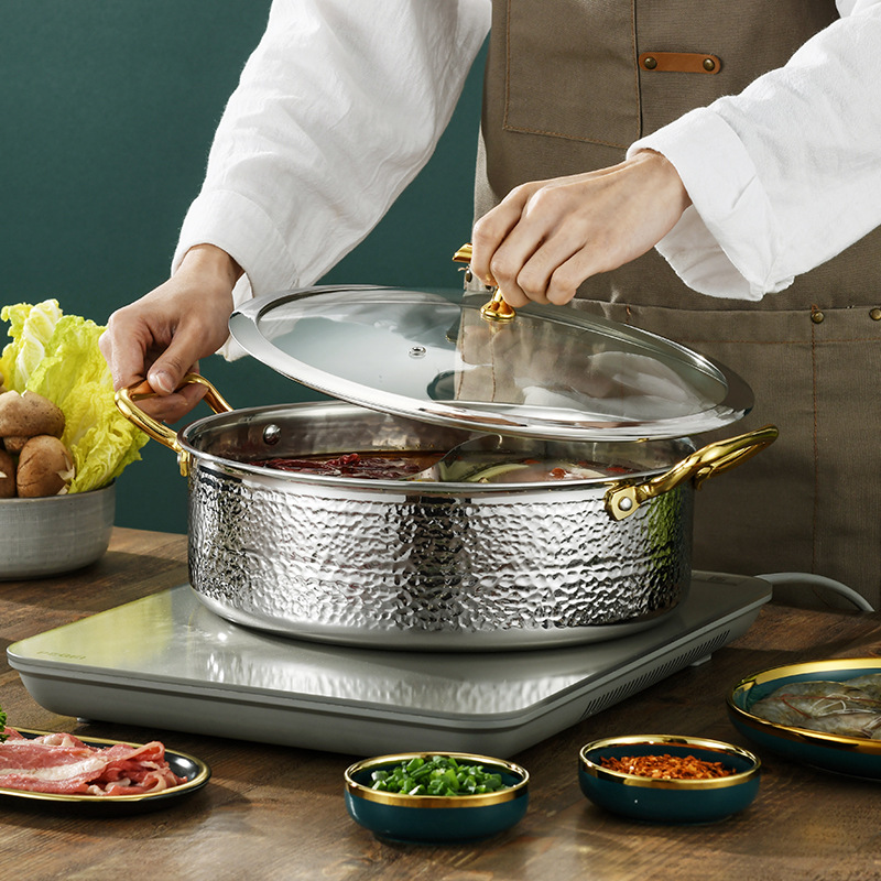 Yiboshi304 Hammer Pattern Clear Soup Pot Three-layer Steel Mandarin Duck Pot Large Capacity Shabu-shabu Hot Pot Induction Cooker With Lid Universal