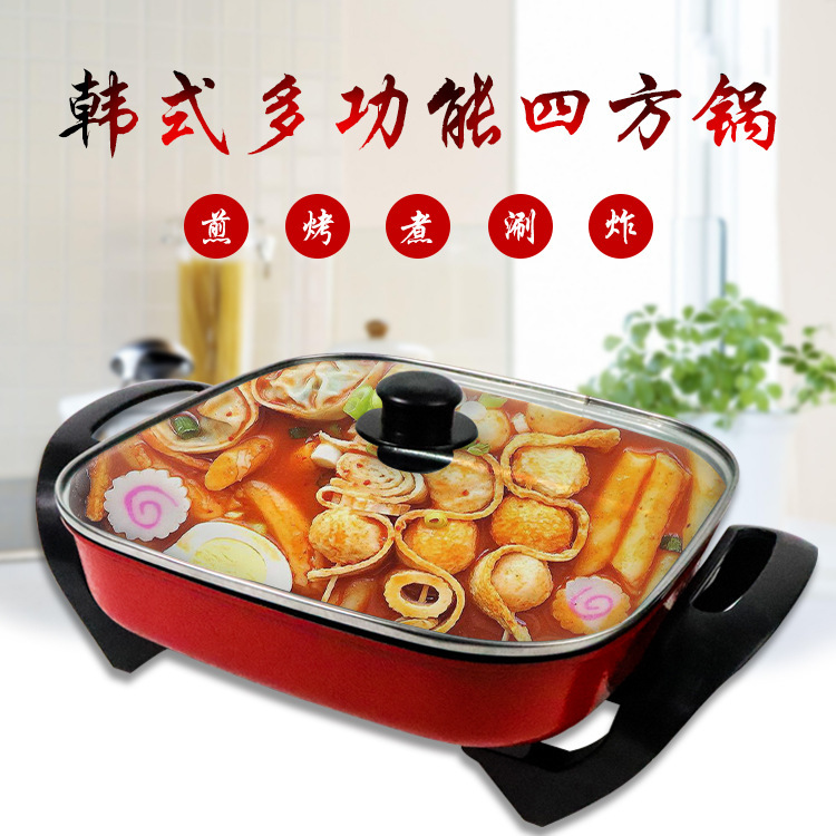 Alloy Non-stick Electric Wok Electric Hot Pot Square Pot Red Double Happiness Multi-function Electric Hot Pot5 Liters Electric Cooking Pot