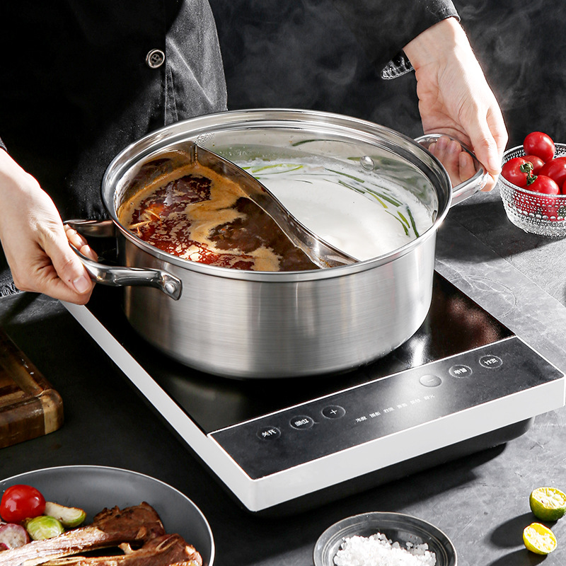 304 Composite Bottom Stainless Steel Mandarin Duck Hot Pot Household Two-flavor Compartmented Hot Pot Gift Induction Cooker Pot Clear Soup Pot