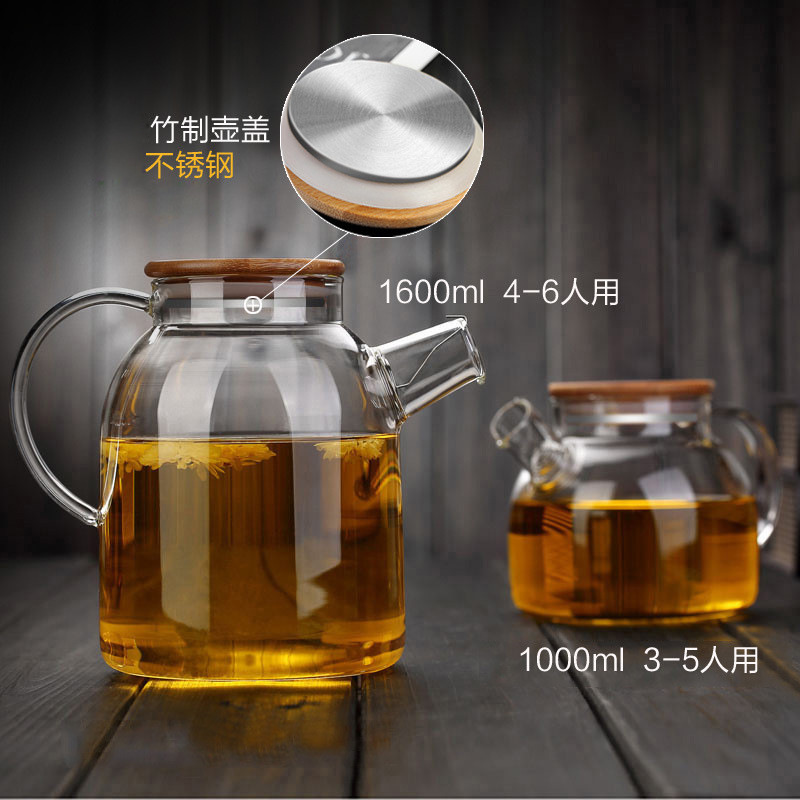 Large-capacity High Borosilicate Glass Cold Kettle Household Bamboo Wood Cover Drying White Boiled Kettle Juice Cold Kettle Flower Teapot