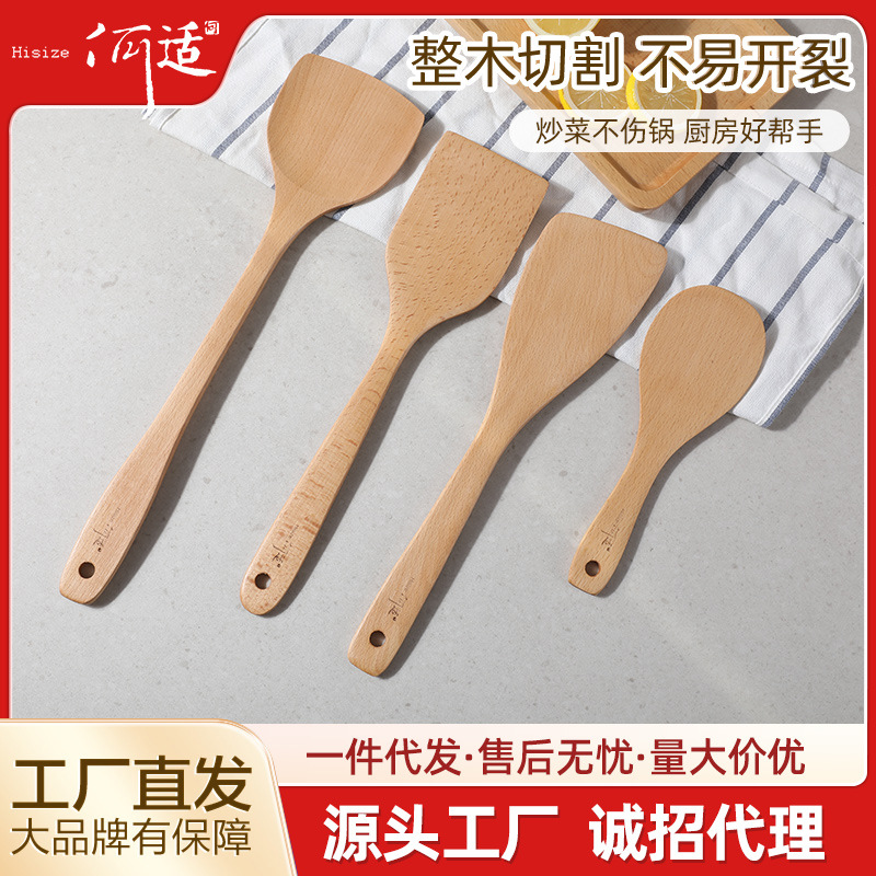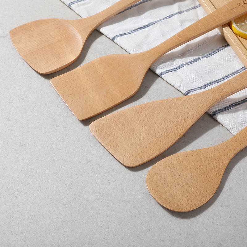 Heshi Home Beech Wood Spatula Wooden Spatula Cooking Spatula Non-stick Pan Kitchen Utensils Kitchen Utensil Set Soup Spoon