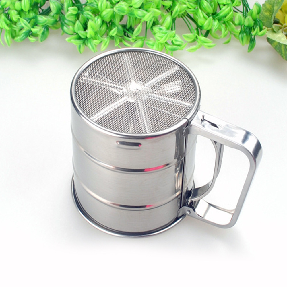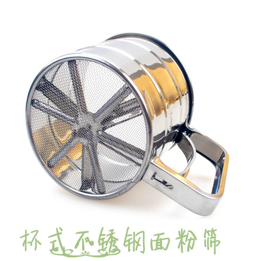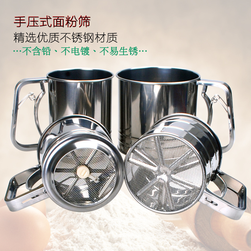 Baking Stainless Steel Flour Sifter Handheld Single Layer Flour Sifter Semi-automatic Hand Pressed Flour Filter
