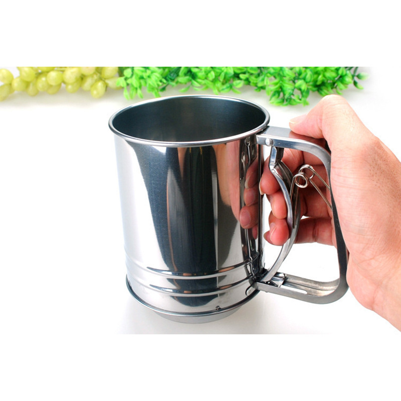 Medium Double Sided Flour Sifter Semi-Automatic Handheld Flour Strainer Household Baking Cup Flour Sifter