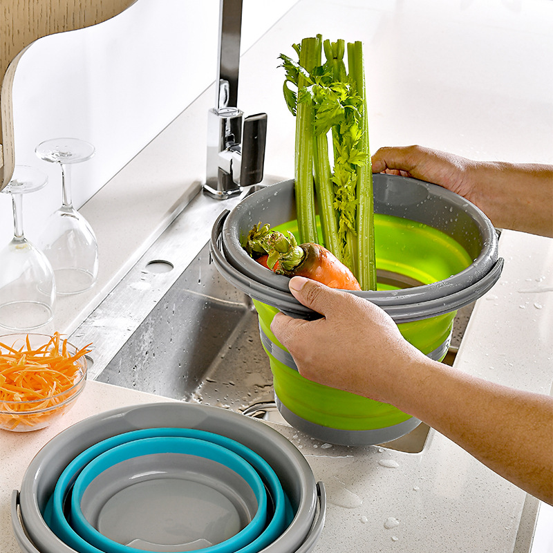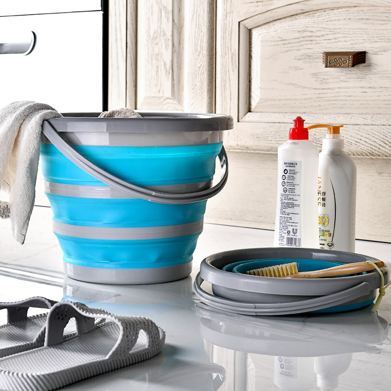 Portable Rubber Folding Bucket Multifunctional Outdoor Handle Folding Bucket Car Bucket Children's Outdoor Fishing Bucket