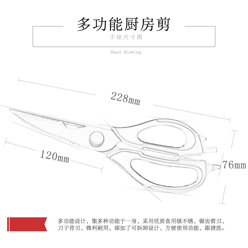 Yangjiang Stainless Steel Knife And Scissors Removable Magnetic Strong Chicken Bone Scissors Refrigerator Scissors Kitchen Food Scissors