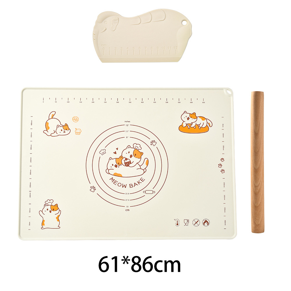 Direct Silicone Kneading Mat Thickened Cartoon Orange Cat Rolling Mat Three-piece Set Household Baking And Dough Silicone Mat