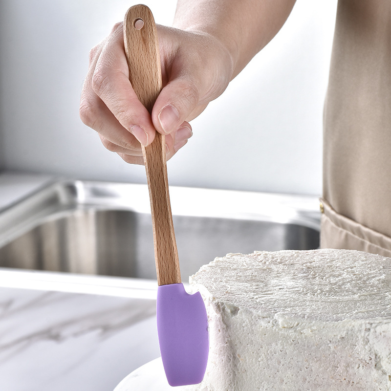 Mini Wooden Handle Silicone Small Scraper Oil Brush Spatula Baking8-piece Set Of Children's Food Supplement Baking And Cooking Gadgets