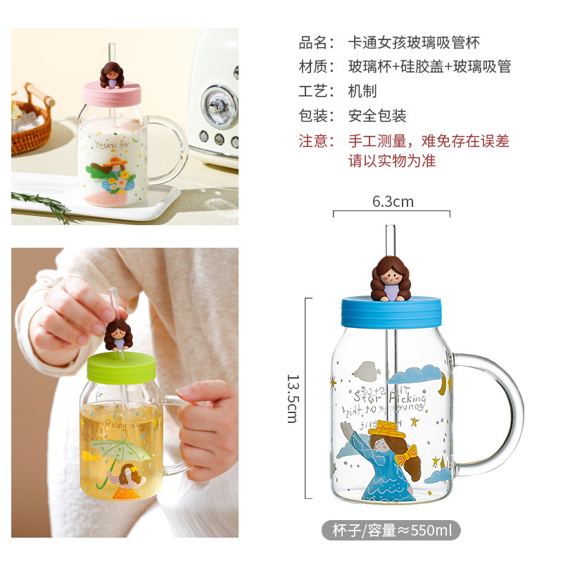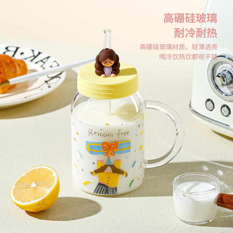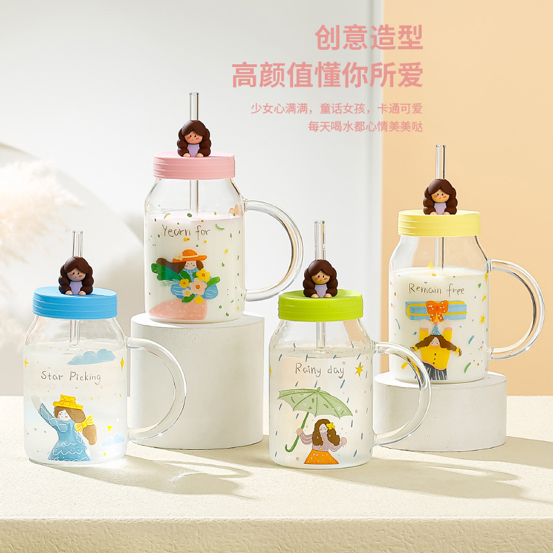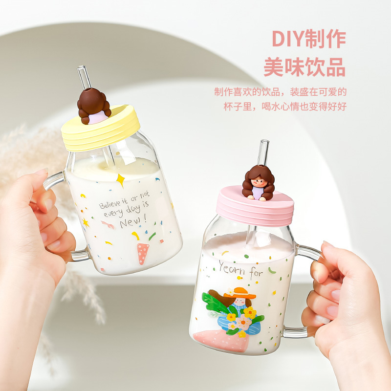 Retro Cute Oil Painting Girl High Borosilicate Glass Cup With Straw High-value Valentine's Day Gift Household Female Cup
