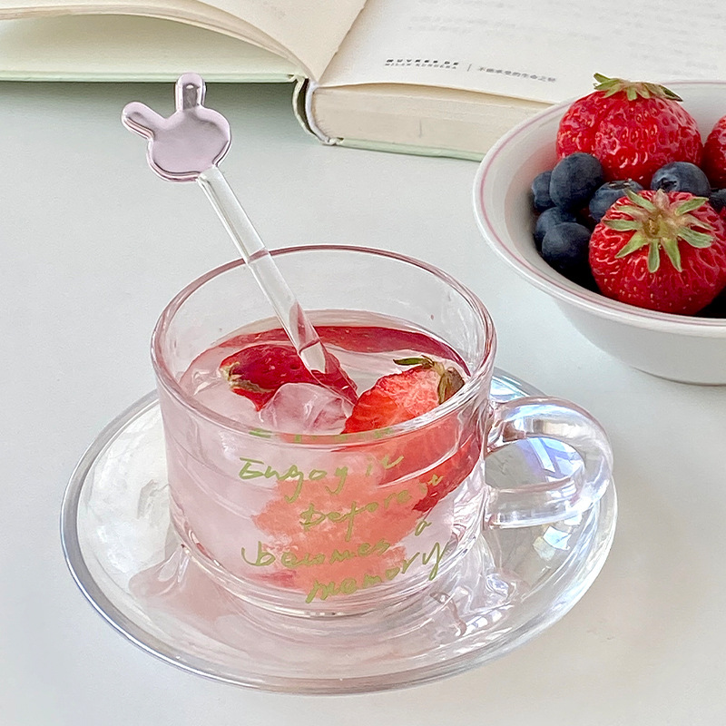 Summer Glass Cup And Saucer Set Style Korean Coffee Milk French Afternoon Tea High-end Cup Chill