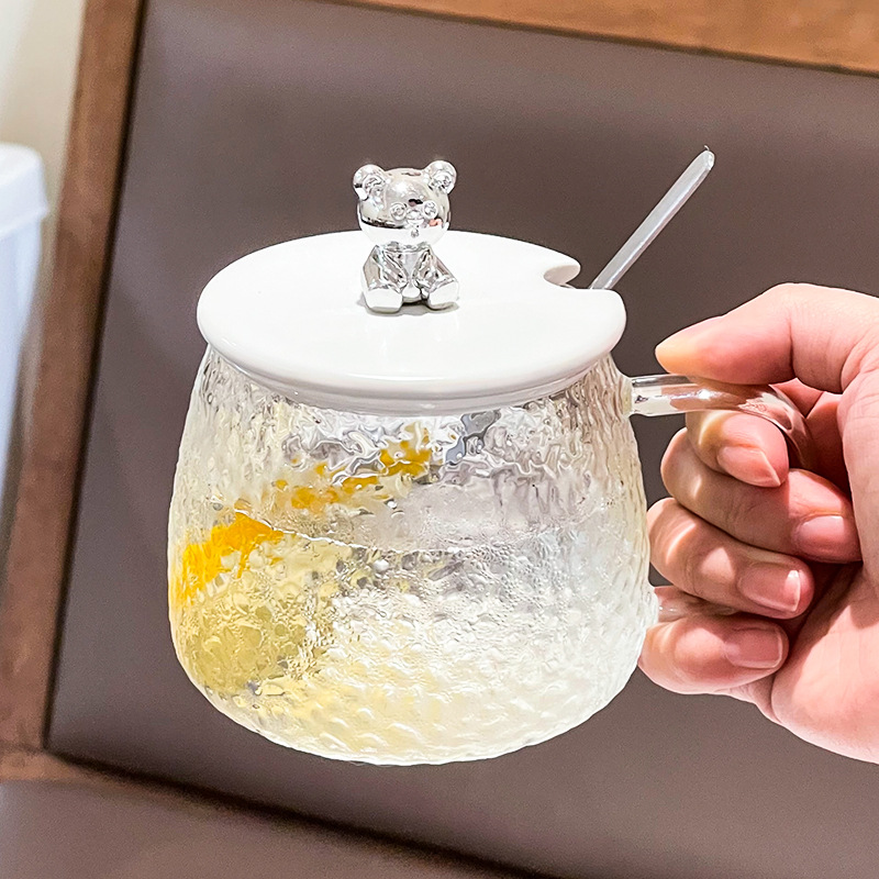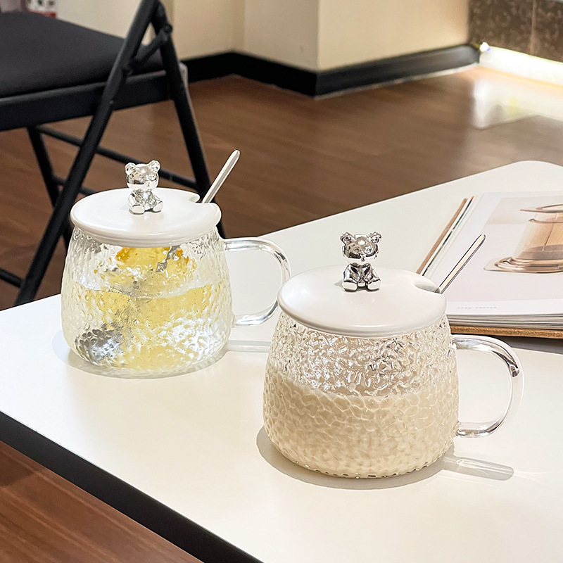 High-looking-style Glass Water Cup With Lid For Household Heat-resistant Breakfast Milk Coffee Cup Creative Gift Mug