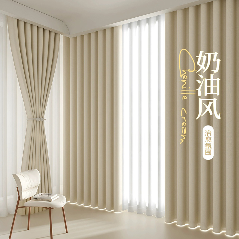 Chenille Cream Velvet Curta Living Room Bedroom Blackout Finished Curta French Light Luxury Japanese Style Style