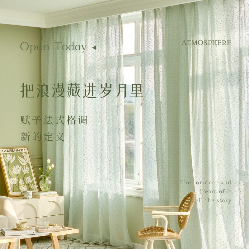 Light French Style Small Fragrance Sunscreenulation Gauze Light-impermeable Window Screen Living Room Balcony Dream Lace Gauze Curtain Finished Product