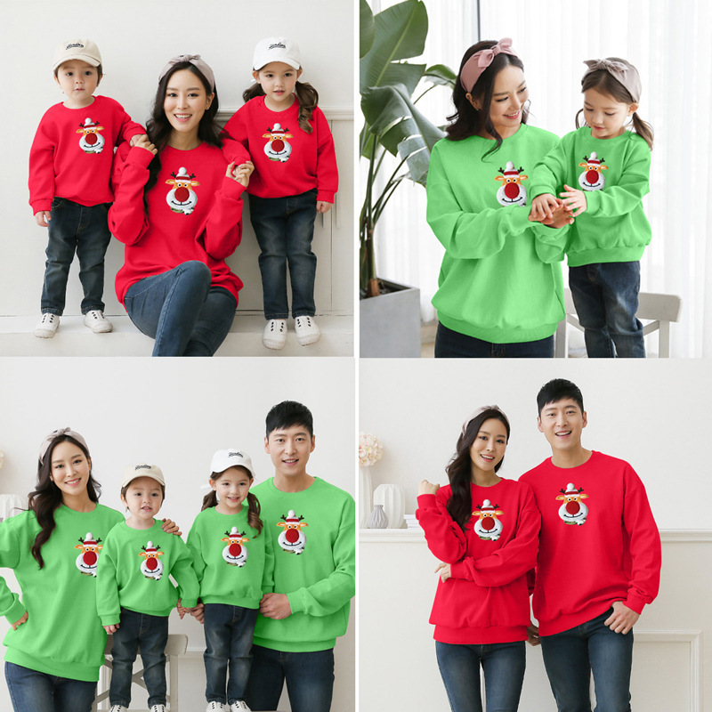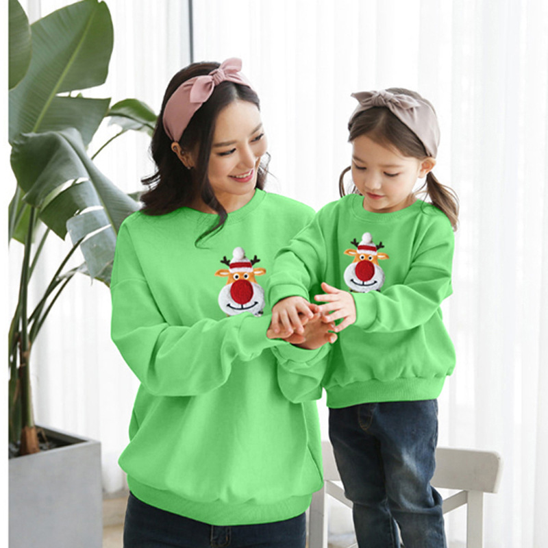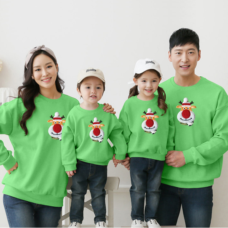 Korean Parent-child Clothing Plus Velvet Christmas Sweatshirt Red-nosed Deer Coat Winter Mother And Daughter Clothing Kindergarten Photo Studio Activity Clothing