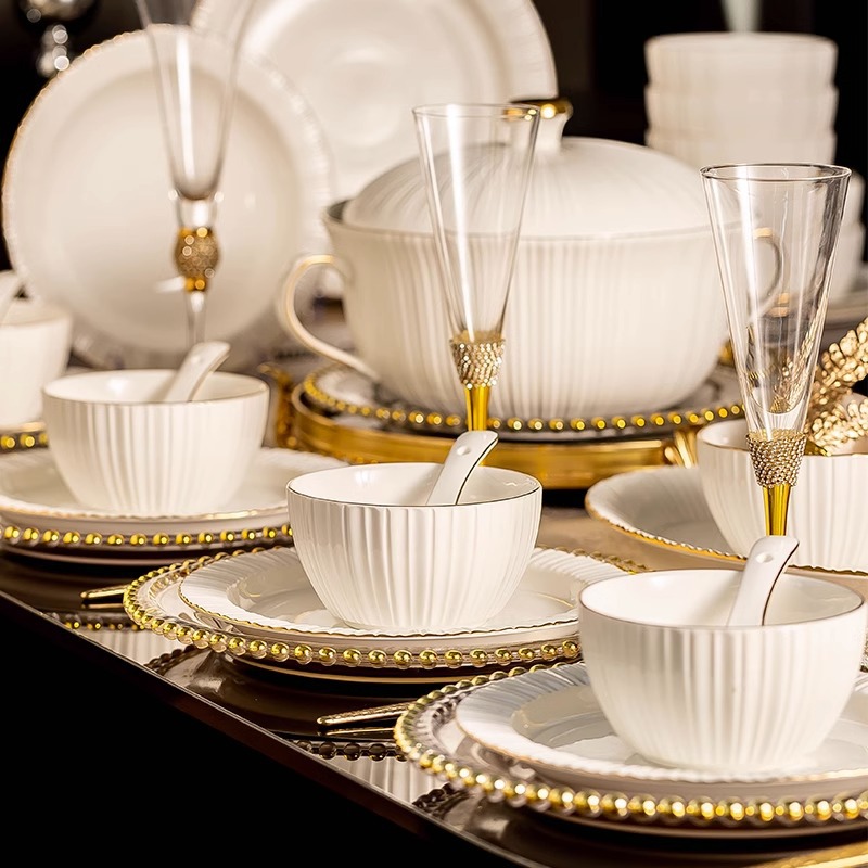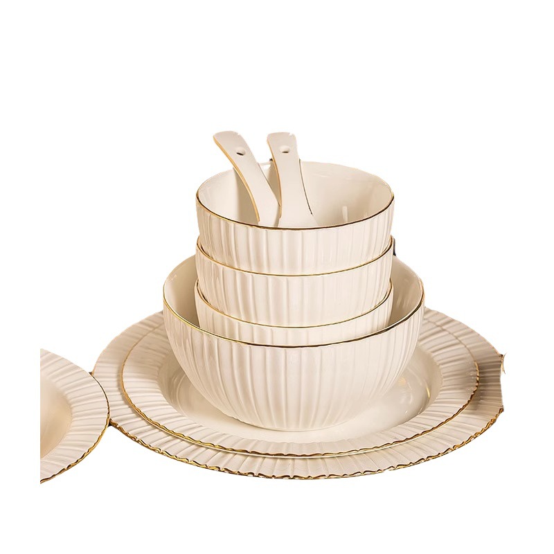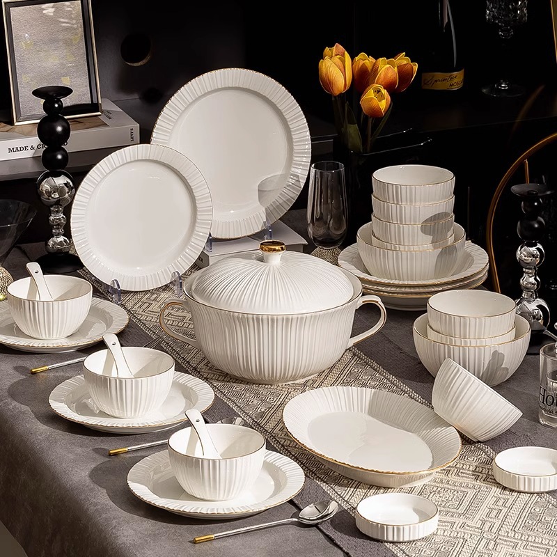 Light Luxury Dishware Set Household Nordic Pure White High-end Jingdezhen Tableware Housewarming Dishes And Bowls