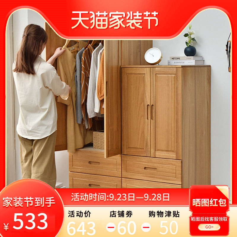 VHM7 Solid Wood Small Wardrobe Home Bedroom Storage Cabinet Log Storage Cabinet Simple Modern Small Apartment Narrow Wardrobe Free